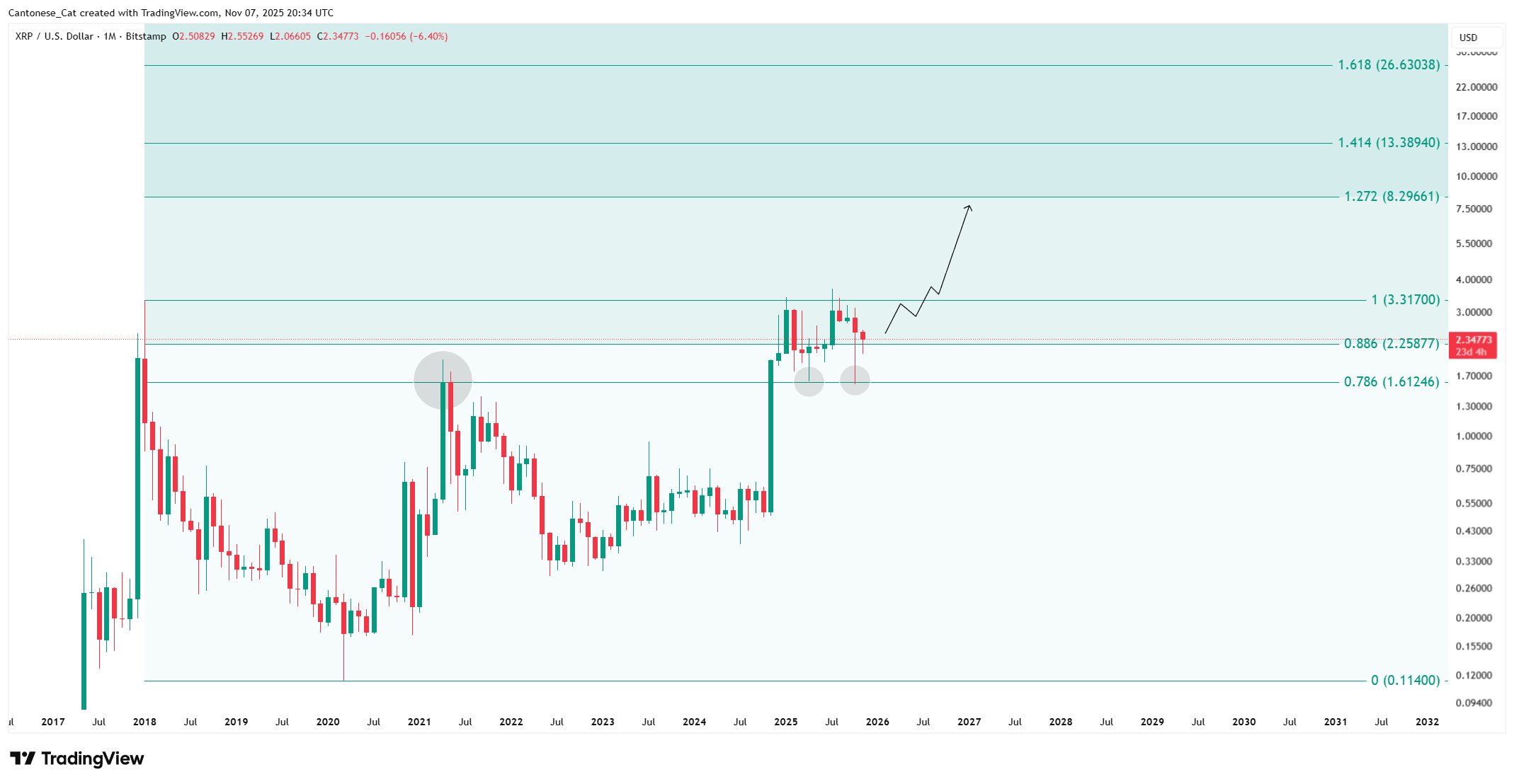 The continued XRP ETF filings have led to bullish sentiment among traders. According to crypto analyst Cantonese, the coin could surge to $8 if it keeps holding key technical levels.