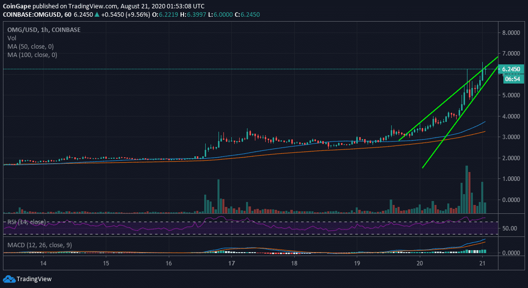 At the time of writing, OMG Network is trading at $6.28. The prevailing price comes after a minor retreat from highs at $6.60. Meanwhile, buyers seem to be building on the bullish momentum and more rapid price actions are expected in the coming sessions, especially the weekend.