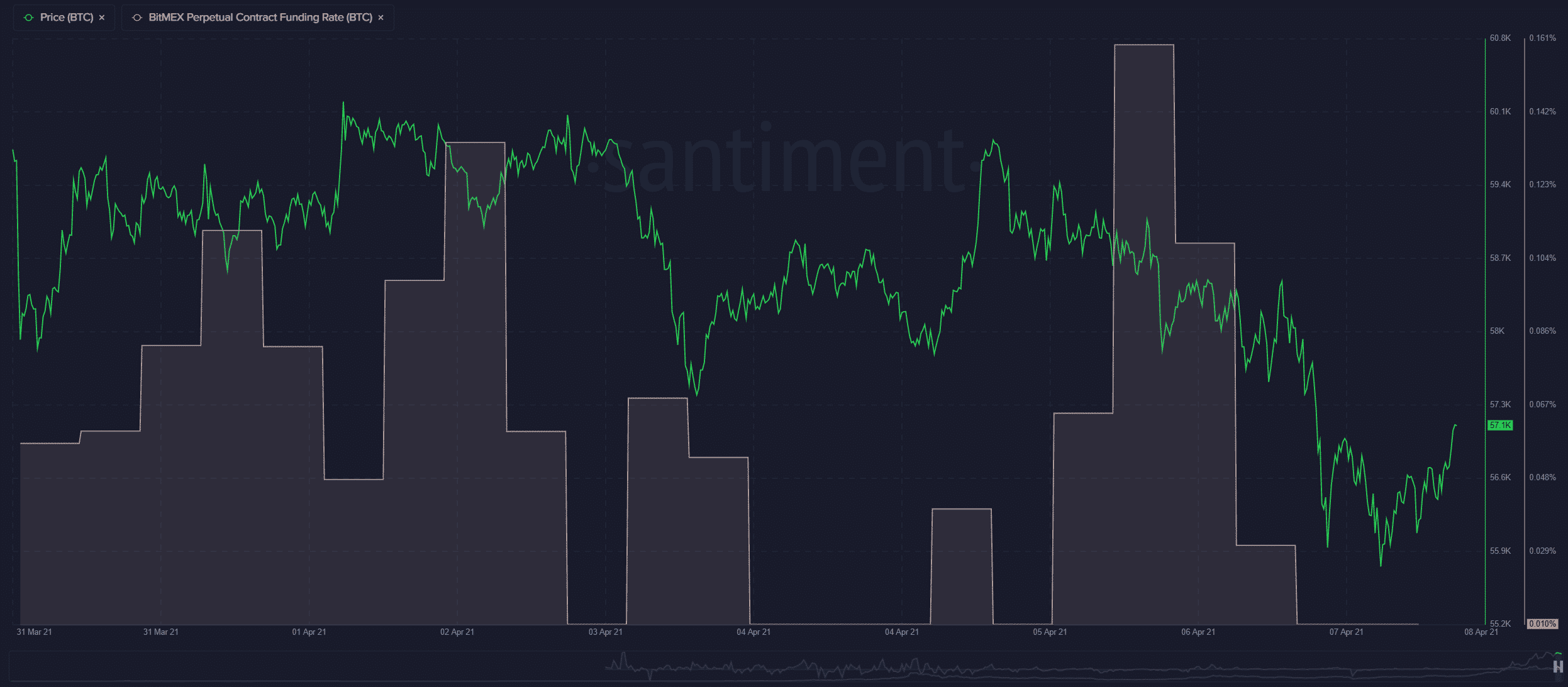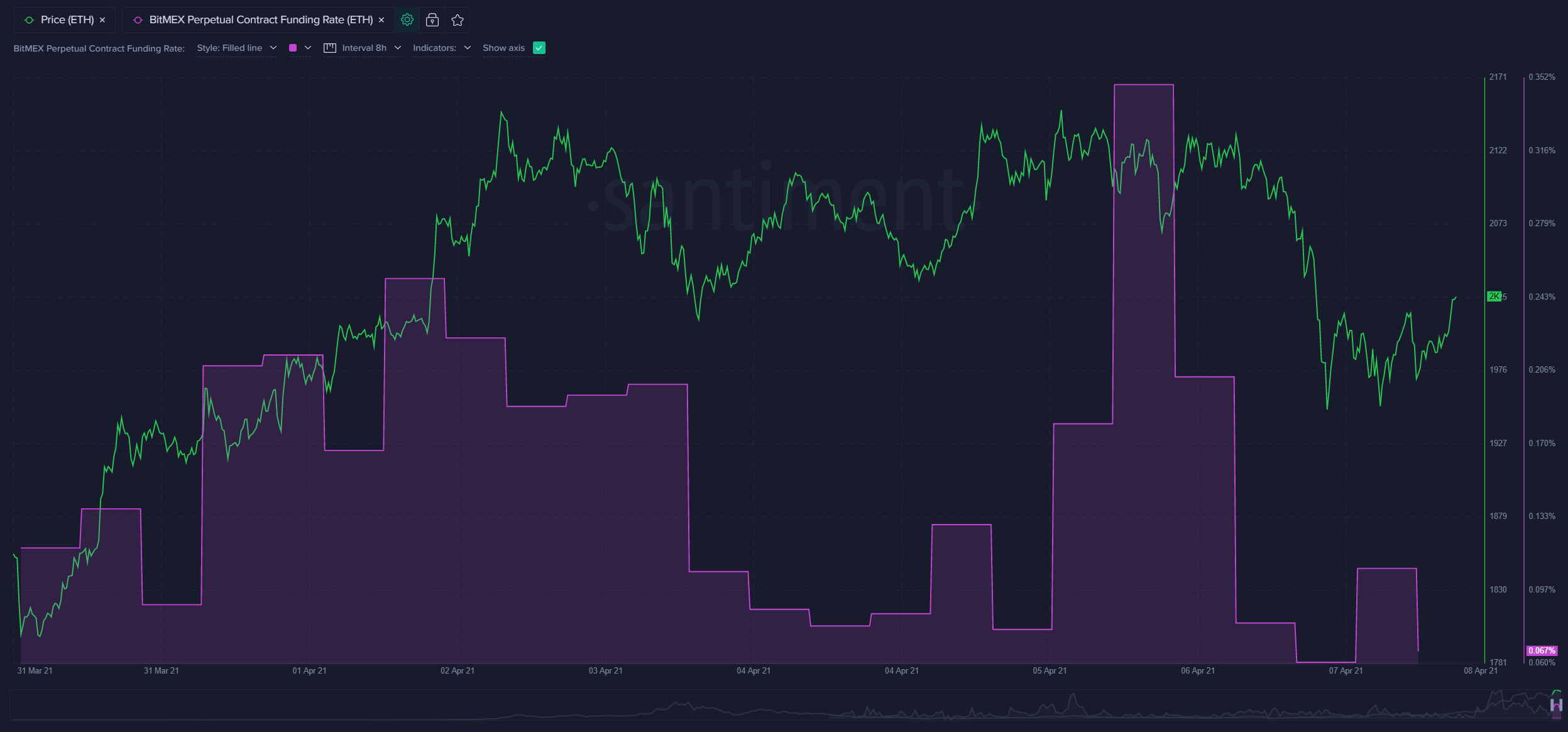 In its study, Santiment cites the BitMEX perpetual contracts funding rates for the first week of April.