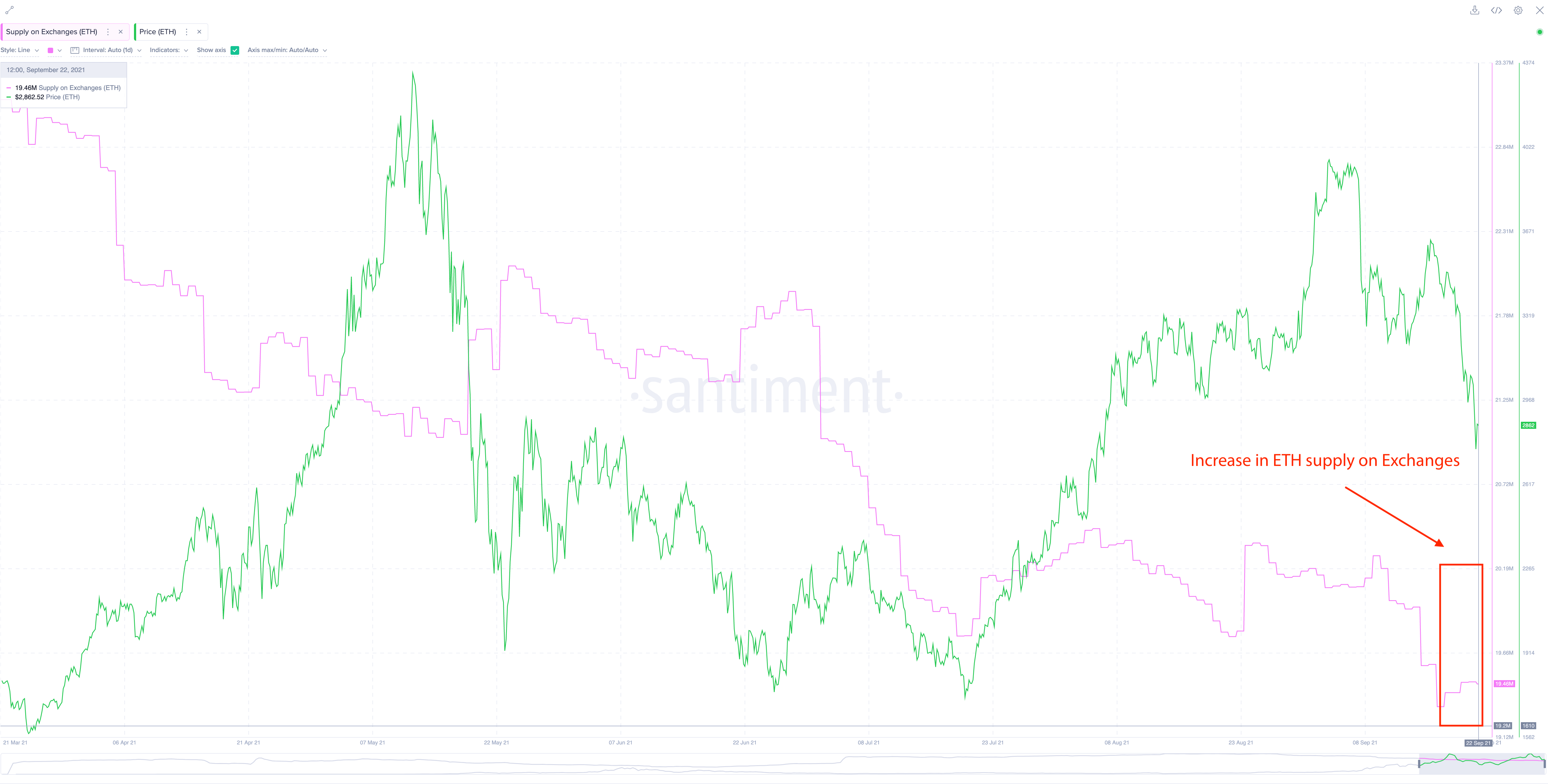 However, as per the Santiment report, the ETH supply at the exchange increased minorly during the recent downtrend. The overall exchange supply still remains low.