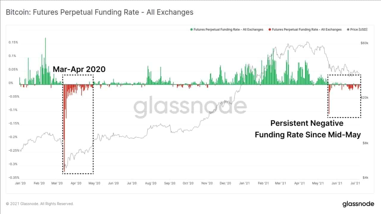 Many analysts believe Bitcoin is currently in a similar market phase seen during the mid of 2017 just before the final bull run began. However, on-chain data indicates Perpetual Funding Rate has been persistently negative since mid-May and buyers are a little hesitant on going long on the top cryptocurrency.
