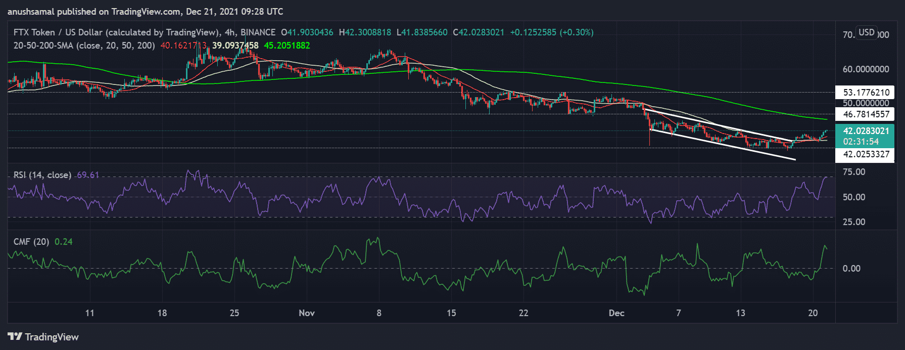Increased bullish pressure can push the coin upwards near $46.78. The price of the FTX token was above the 20-SMA line, which signified that buyers had dictated the price movement in the market.