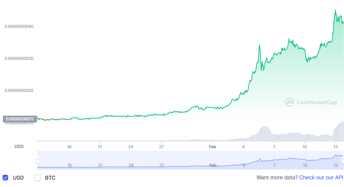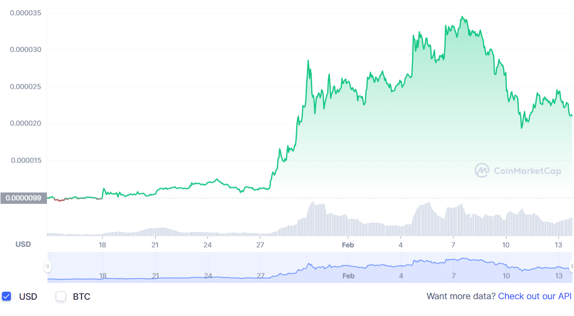 At present, Floki is trading around $0.000021 and has a 24-hour trading volume up by 58.13%. Now it stands at $23,504,980. In the past four weeks, FLOKI has soared nearly 112.89%.