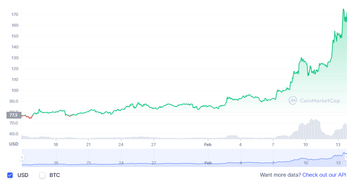 BinaryX began as a decentralized derivative trading system and now, it provides services like infrastructural support, a DAO governance system, and more. Its price at the time of writing is $168.04, with a 24-hour trading volume up by 68.63%.