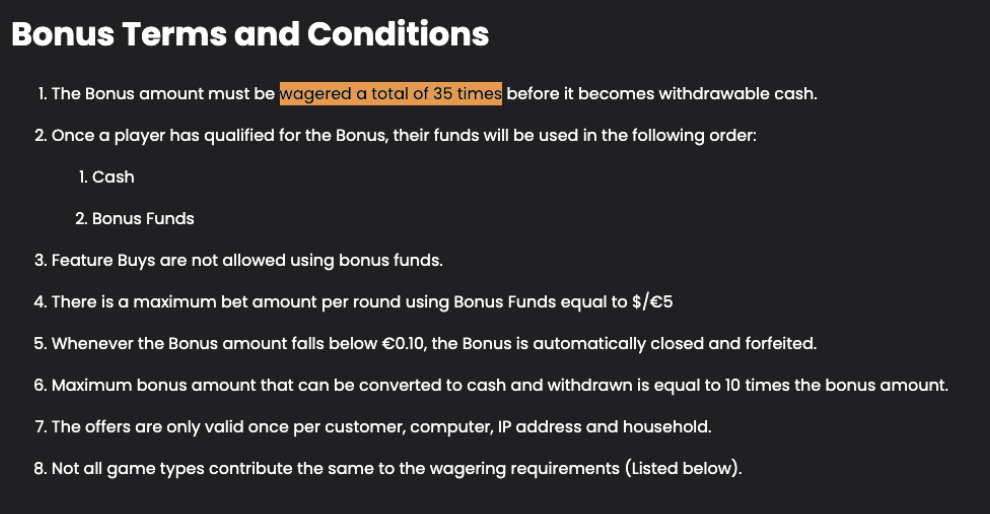 Before depositing your crypto, it is better to scan the bonus T&Cs for these: