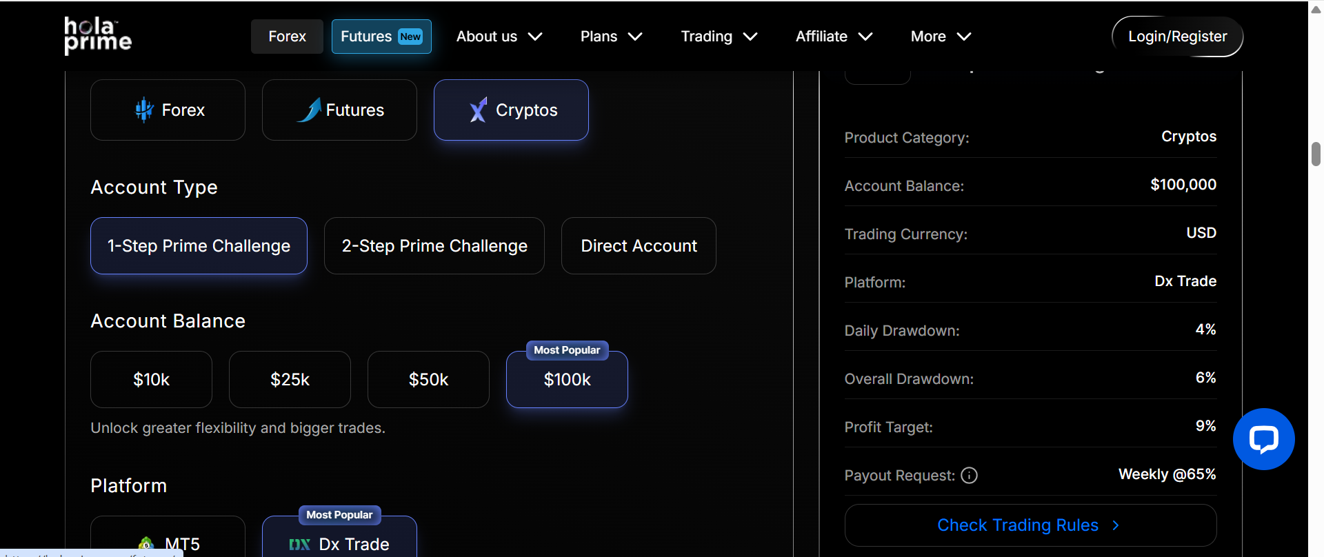 Hola Prime is a crypto-focused prop trading firm that’s best suited for traders who value speed, flexibility, and multiple options. Best known for its 1-hour payout processing, Hola Prime offers multiple payout cycles, allowing traders to choose what works best based on their strategy and experience level.