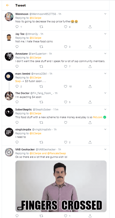 The CEO of Swipe and Founder of Venus Protocol, Joselito Lizarondo hinted at a potential collaboration of SXP on DeFi protocol PancakeSwap. While replying to the Twitter user who expressed an idea of Swipe holders to provide an incentive for liquidity to get free CAKE while the CAKE holders can earn SXP by staking their CAKE, the exec tweeted,