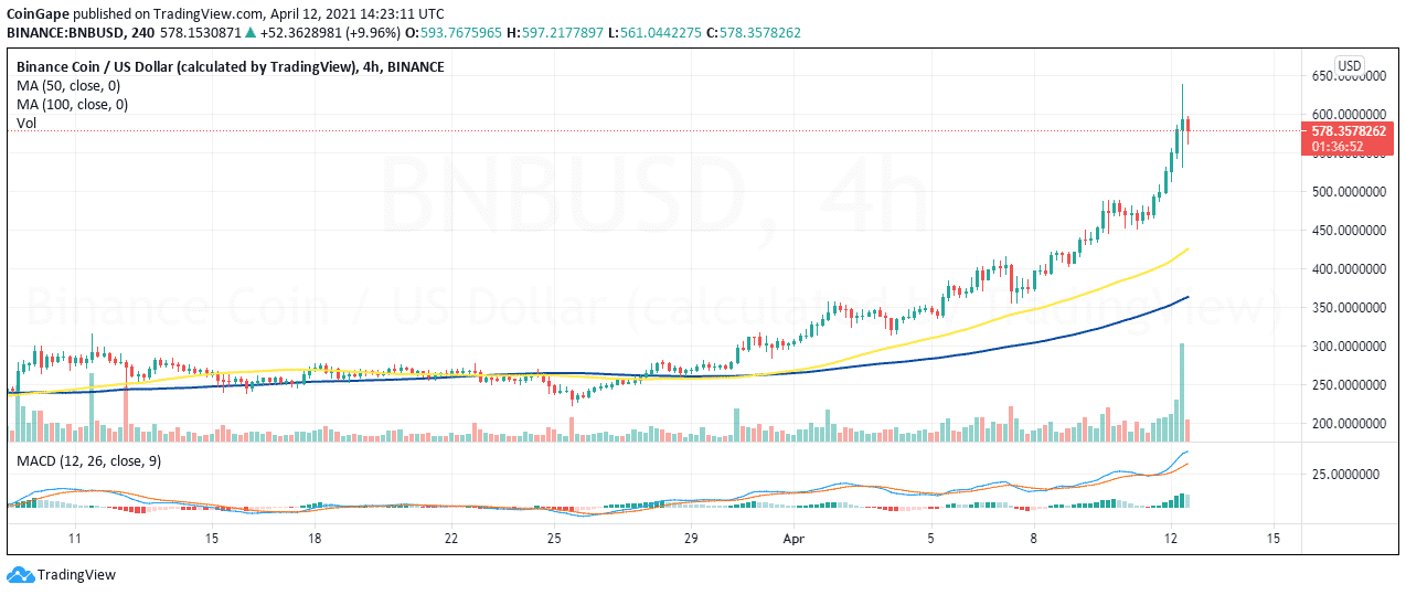 BNB Price has quickly become the darling of the cryptocurrency market. In addition to making a significant spike to $638, a new all-time high, the token’s market cap almost hit $90 billion. BNB price still sits in the third position on the market after Ethereum.