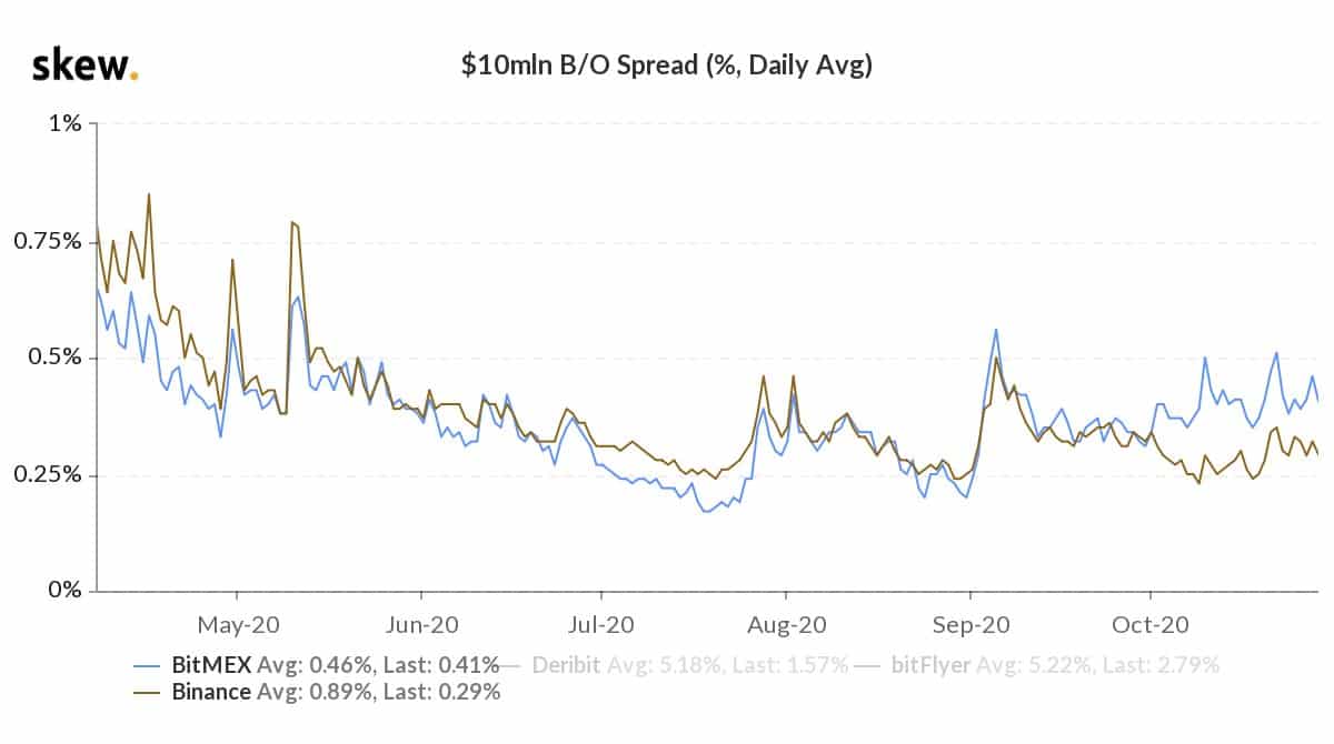 “Well, BitMEX lost a lot of customers recently due to their new policies — and I bet a lot of them went to Binance. Those are the same customers who gave BitMEX their reputation as a house of liquidations, so it’s no surprise they’re exhibiting similar behavior elsewhere. And BitMEX’s order books and other users have kind of “adjusted” for all the liquidations — smart traders try to provide to errant liquidation prints, increasing order book thickness over time, and making the overall price impact lower. Binance hasn’t adjusted yet.”