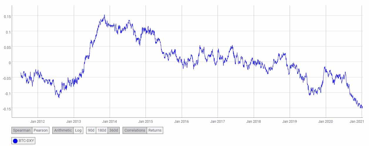 Bitcoin Correlation With US Dollar Reaches a New Low Owing to Recent Printing Spree