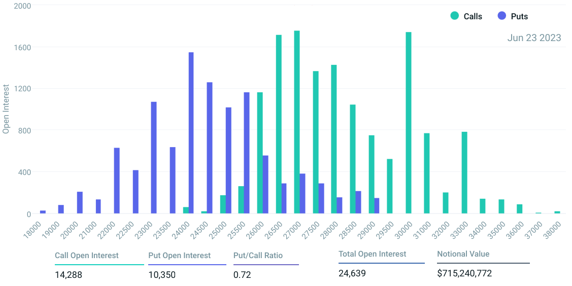 For example, if Bitcoin’s price stays around $29,800 at 8:00 am UTC on June 23, there will be only $5 million worth of put options. This difference occurs because the right to sell Bitcoin at $28,000 or $29,000 becomes invalid if BTC is trading above that price at the time of expiration.