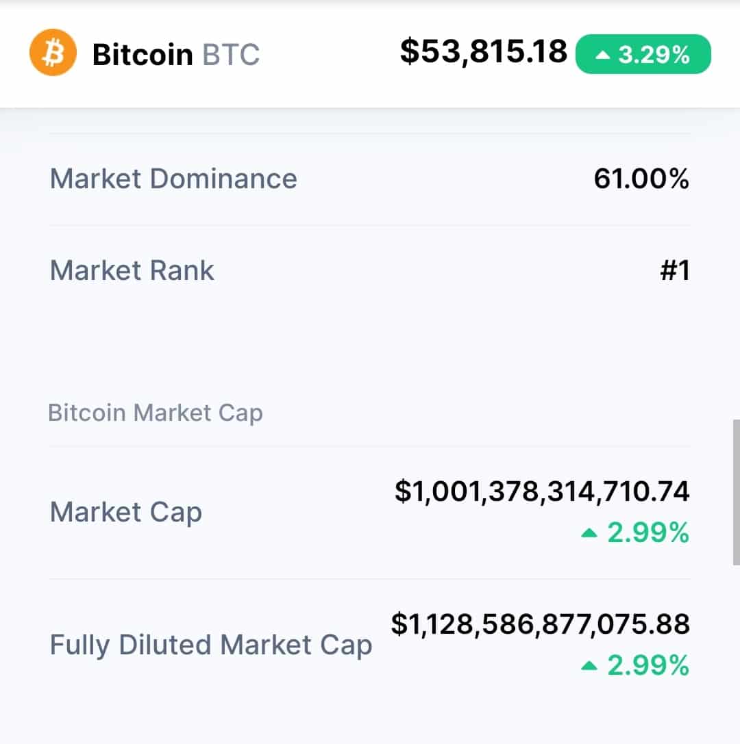 Bitcoin Marketcap Breaches $1 Trillion With New ATH of $53,756