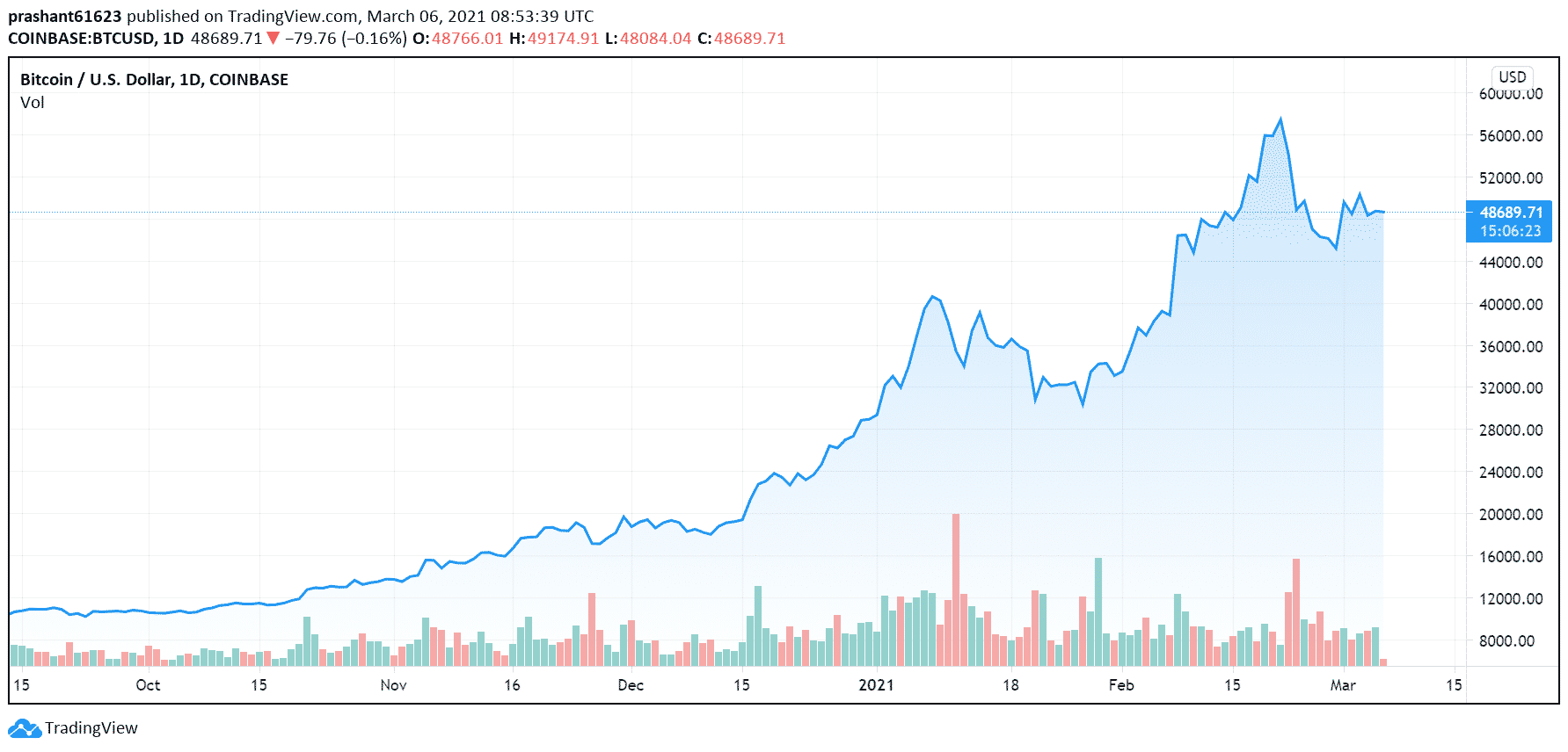 Bitcoin Price Consolidating Under $50K
