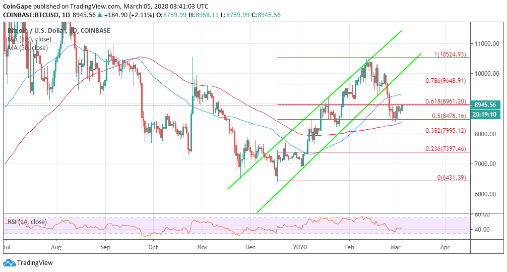 Bitcoin price is back in a bullish zone which will act as the stepping stone for a rally above $9,000. BTC/USD is exchanging hands at $8,937 (on Coinbase exchange) after trending higher 2% on the day. The trading in the last couple of days has mostly favored the bulls. However, the buyers have lacked the power to pull Bitcoin price above $9,000. The largest cryptocurrency has, nonetheless, stabilized above $8,800 despite the fears that the Coronavirus may become a global pandemic.
