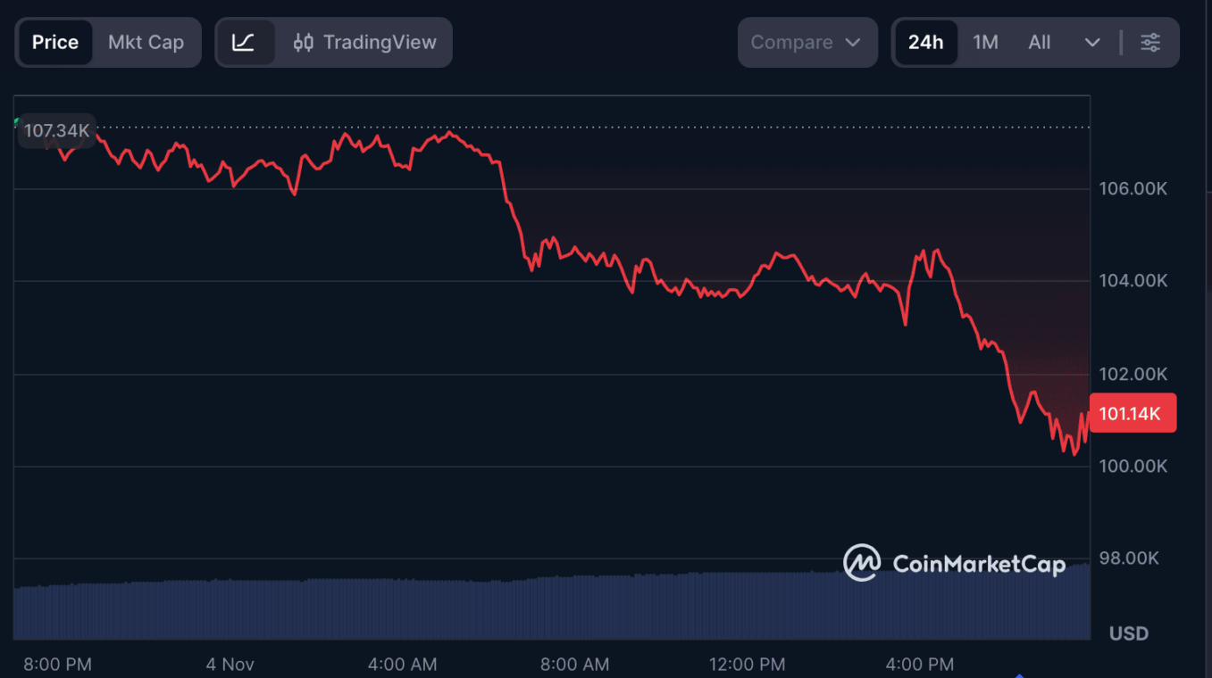 - The price of Bitcoin dropped by more than 5%, hitting $99,980.