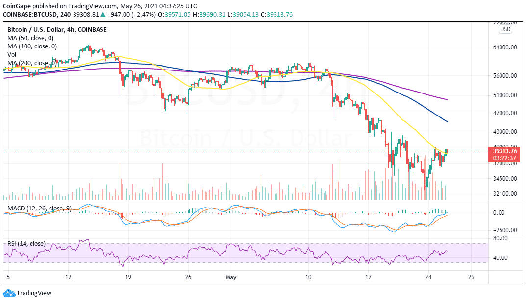 Precisely, Bitcoin trades slightly above $39,000 at writing. On the downside, the 50 Simple Moving Average (SMA) provides immediate support, helping bulls to focus on gains above $40,000.