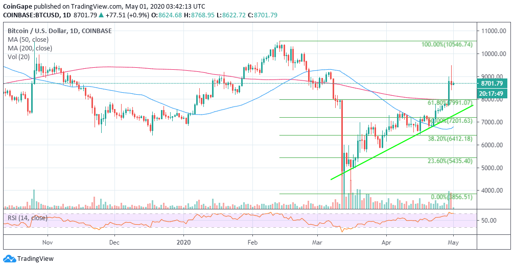The cryptocurrency community watched in bewilderment as Bitcoin soared to highs close to $9,500 on Friday. The move was incredible owing the fact that Bitcoin sunk to $3,800 mid-March. However, most retail traders do not buy the idea that Bitcoin’s recovery is strong enough to sustain higher gains towards $10,000. However, some analysts such as Michael van de Poppe advised traders to buy the dips amid the FOMO-driven rally.