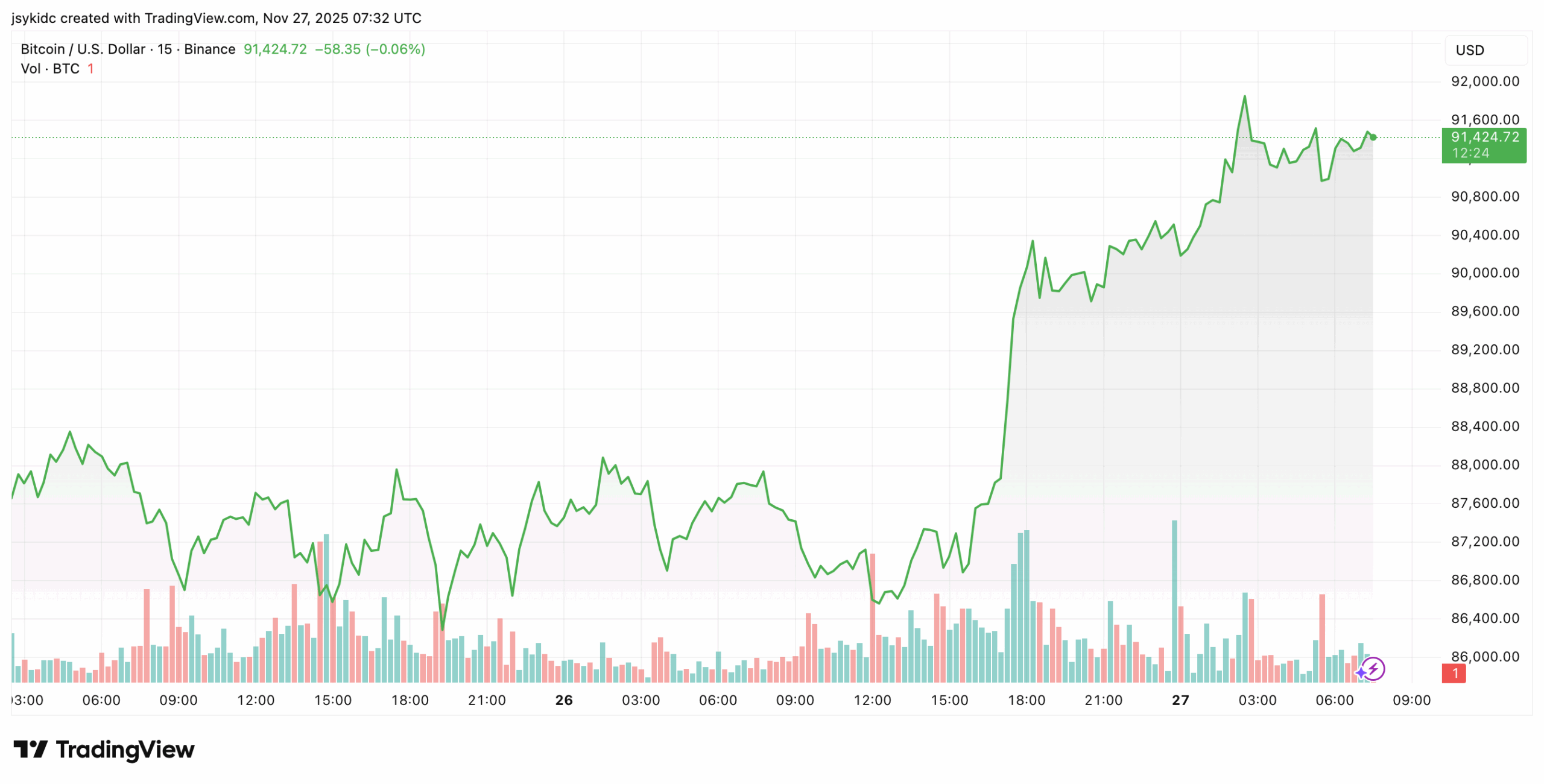 Bitcoin Price Reclaims $91k as JP Morgan Predicts December Fed Rate Cut