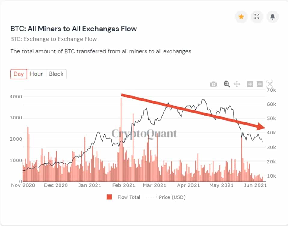 Apart from exchange outflows, the Bitcoin network’s mining hashrate has returned to the top despite the recent Chinese crackdown and FUD. The mining fees of the Bitcoin network also reached a new 7-month low. The miners have also stopped selling their Bitcoin holdings despite the price slumber under $40K. The exchange flow from the miner’s wallet has also been on the decline.