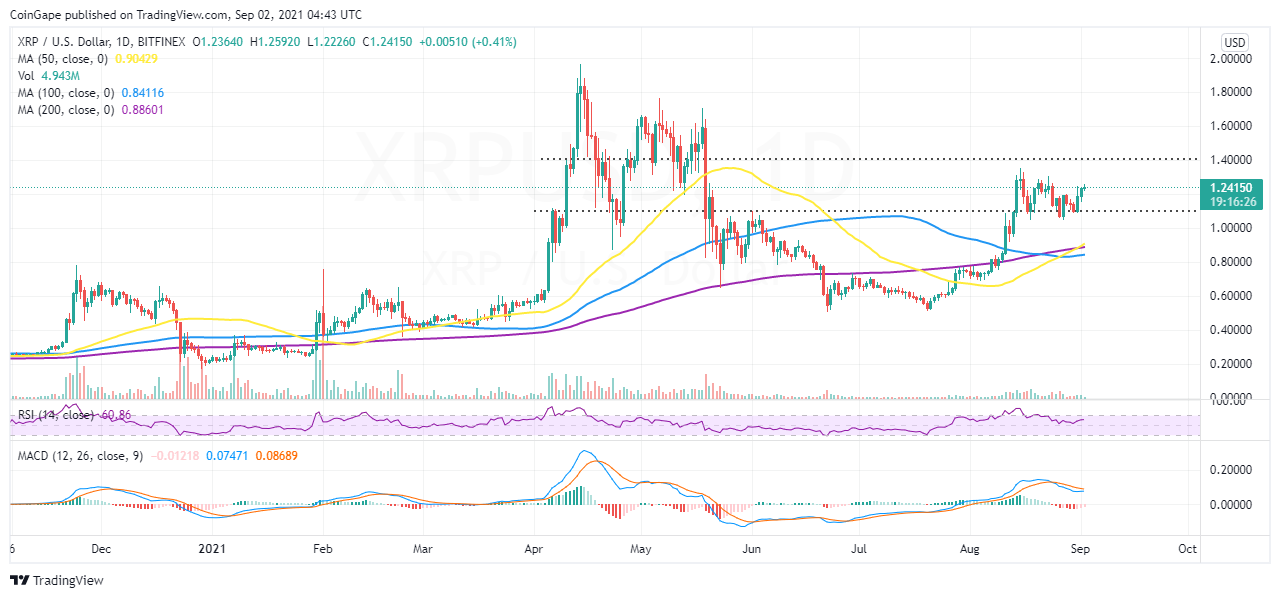 - XRP makes its way to $1.25 while the Ripple vs. SEC lawsuit drags on the US court.