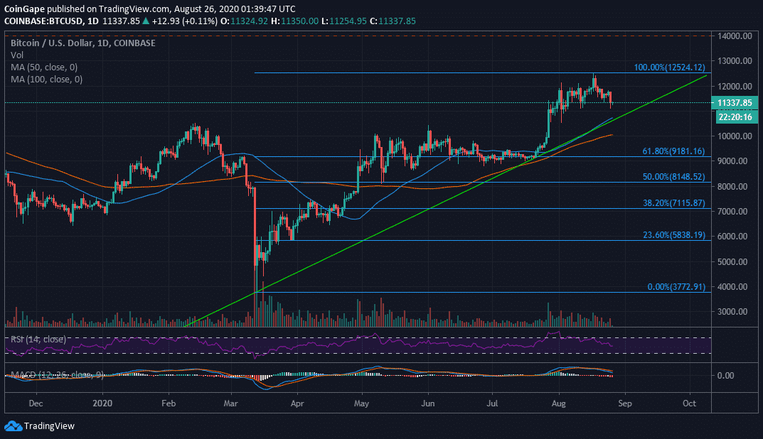 The Relative Strength Index (RSI), for instance, is holding the ground marginally below the midline (50). The downtrend appears to have been averted in favor of a reversal. A return above 50 would signal continued upward movement as Bitcoin takes down the resistance currently at $11,400 and $11,600.