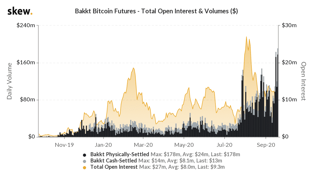 Bakkt recently had witnessed a peak in the trading volume of physically-settled bitcoin futures on Tuesday, however, this was a short-lived peak. On Thursday, Bakkt’s trading volume for physically-settled bitcoin contracts surpassed previous ATH at $172 million and reached $178 million.