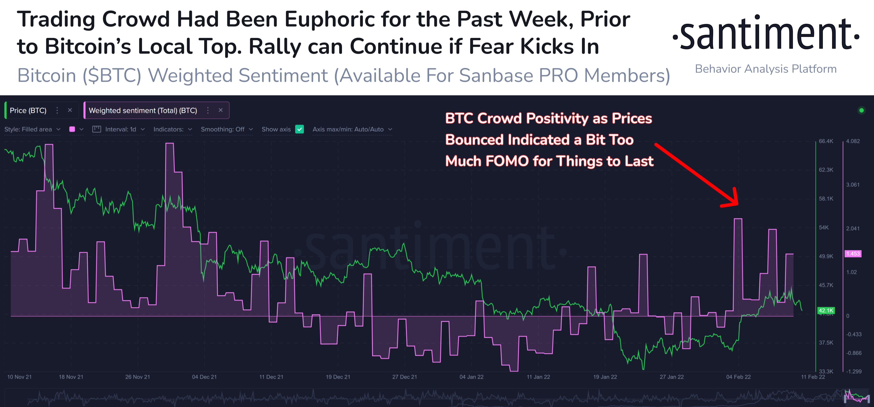 Bitcoin has been somewhat volatile over the last week. However, data provider Santiment reports that the positive sentiment lead to a FOMO-like event which caused the price to drop later. It further added: