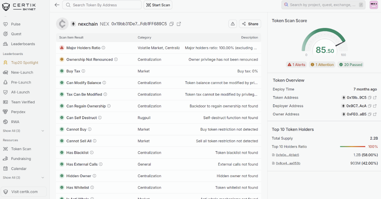 Review the project’s smart contracts to spot malicious functions. Use smart contract analytics tools to analyze the token contract, vesting contracts, liquidity contract, and the protocol’s contracts. Check liquidity locking contracts for Dex-listed assets and mint functions in token contracts. Read more on smart contract audit for presale projects here.