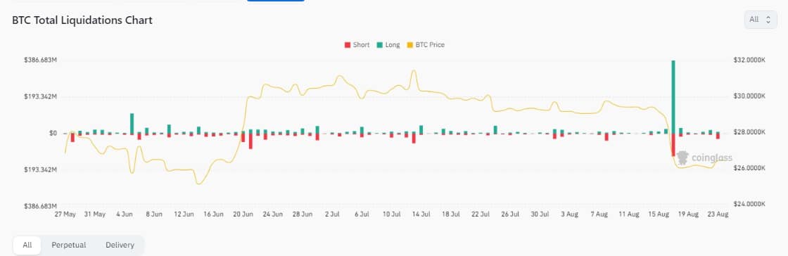 According to the derivatives market tracking platform Coinglass, Bitcoin saw $37.7 million in total liquidations on Wednesday. This was inclusive of $9.64 million of liquidated long positions. It also marked the first time since Sunday that liquidations of BTC shorts dwarfed liquidated long positions. Market participants perceive this as a signal that sentiment is improving.