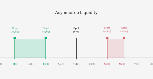 For example, a user can deploy a two-curve strategy where one curve buys ETH between 1200 and 1300 USDC and the other curve sells ETH between 1500 and 1600 USDC. ETH accumulated in the first curve becomes instantly available to sell for USDC as prices cross into the range defined in the second curve.