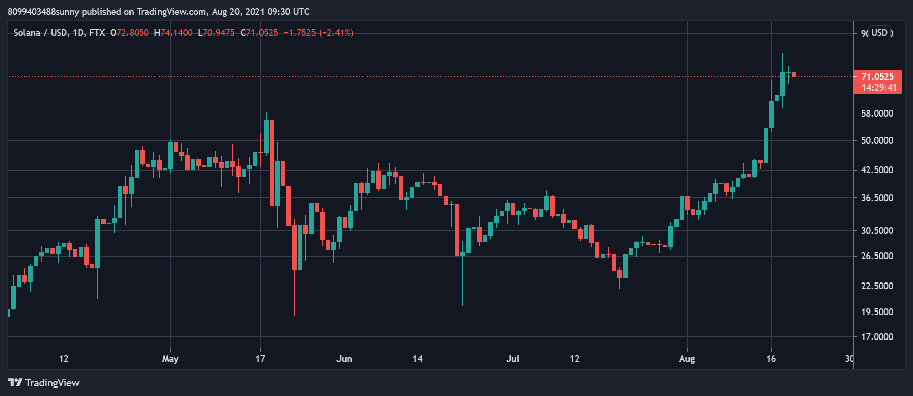 SOL became the first altcoin to hit ATH after it breached the $80 mark on August 18. while LUNA hit its ATH of $33 the very next day. The price surge in altcoins and the overall crypto market indicates we are entering the second leg of this bull run.