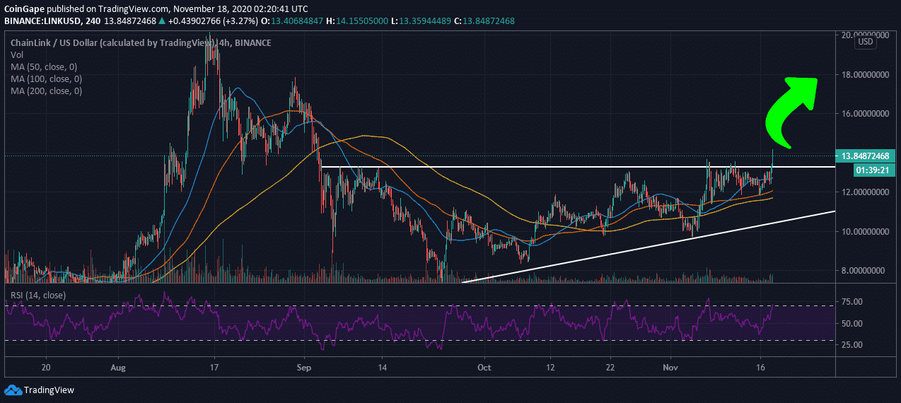 At the moment, all attention is channel toward lifting above $14 and establishing higher support. The final leg to $18 will come as a result of the fear of missing out (FOMO) and greed among investors who currently anticipate Chainlink to hit new all-time highs before the year ends.