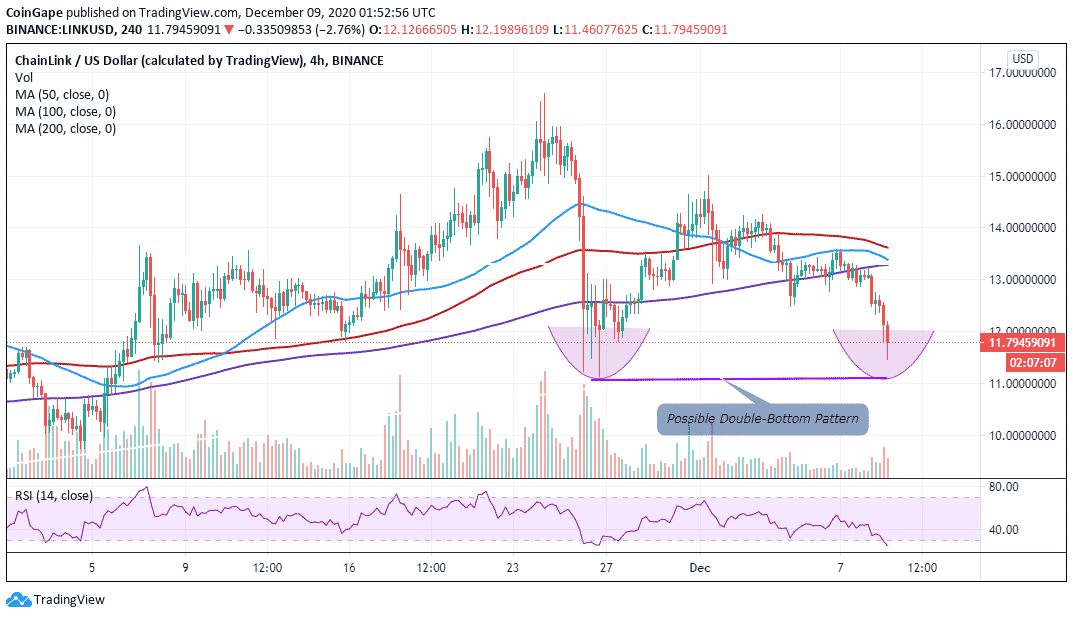 Chainlink is leading the correction in the decentralized finance (DeFi) ecosystem after losing over 10% of its value since Tuesday. The token is trading at $11.7 amid an ongoing retreat. Recovery is possible if LINK confirms the likelihood of a double-bottom pattern forming on the 4-hour chart.