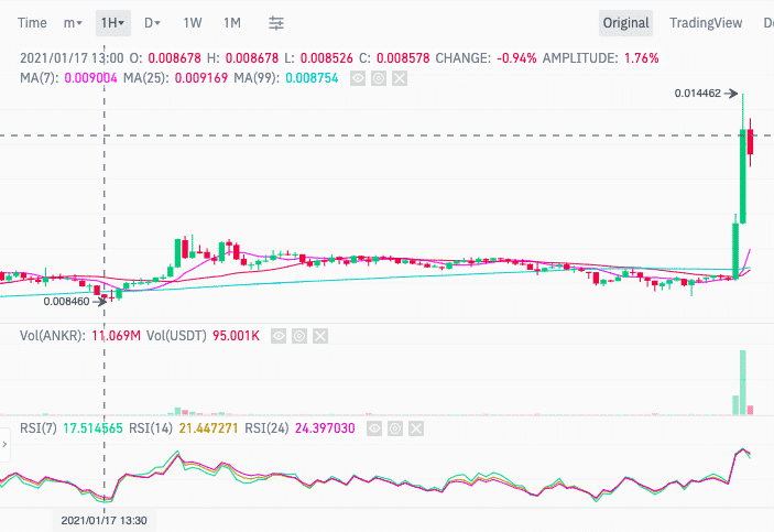 As soon as the ANKR listing at Coinbase news broke the ANKR token price saw a rise in both ANKR/USDT as well as ANKR/BTC pairs. At the time of reporting the ANKR/USDT was trading at $0.013 and reaching a new high of $0.014. ANKR is already listed at major cryptocurrency exchanges like Binance.