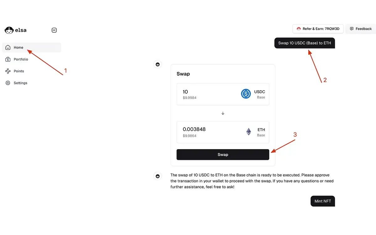 Use Elsa, the onboarded AI of the HeyElsa ecosystem, to turn the points into actual rewards.
