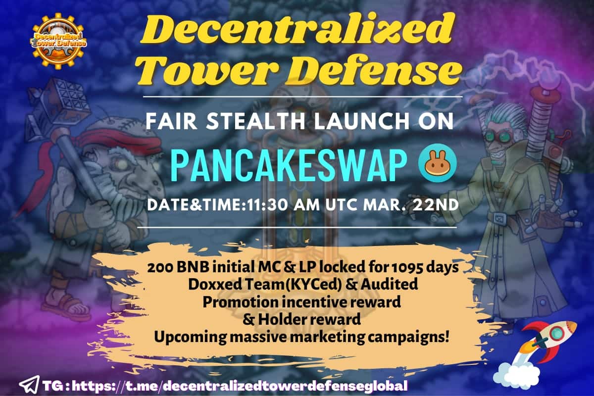 Decentralized Tower Defense is a doxxed project that combines blockchain tech with gaming features to bring an epic tower defense game based on the fan-favorite BNB chain. The best part about DTD is that it is not just a crypto gaming project but also has limited-edition NFTs and a whole new promotion incentive program to benefit users. Players need to hold at least 500 $DTD tokens to receive a holder award as well as an incentive reward.