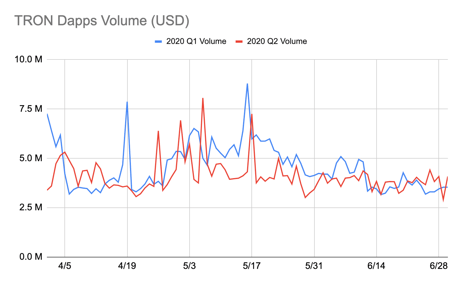 While TRON continued to fare low, EOS witnessed a 16.7 percent increase than the first quarter of 2020.