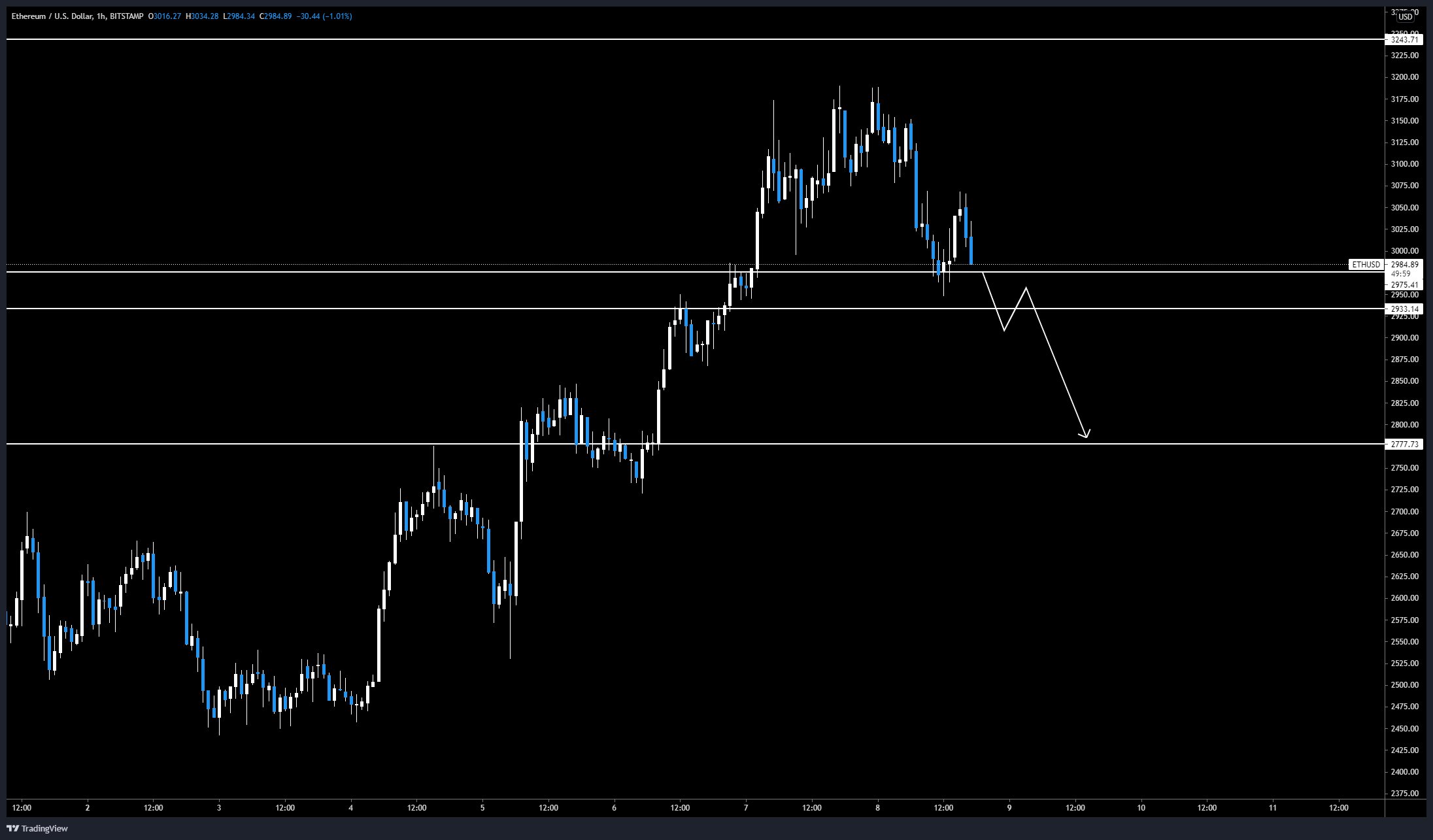 The immediate key support level for ETH lies at $2,933 and the next support lies at $2,777.