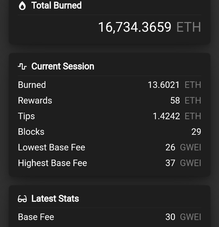 Ethereum proponents beleive the deflationary feature would make ETH more scarce and Valuable. Since the London Upgrade, the network has burnt a total of 16,734.3659 ETH worth $501,408,807.