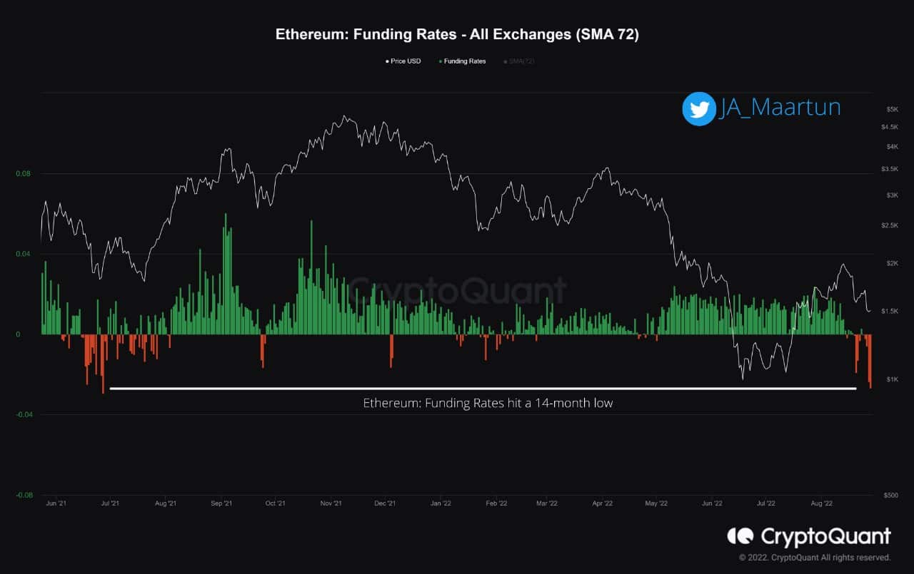 Ethereum Funding Rate At 14-Month Low, What Does it Mean for ETH Price?