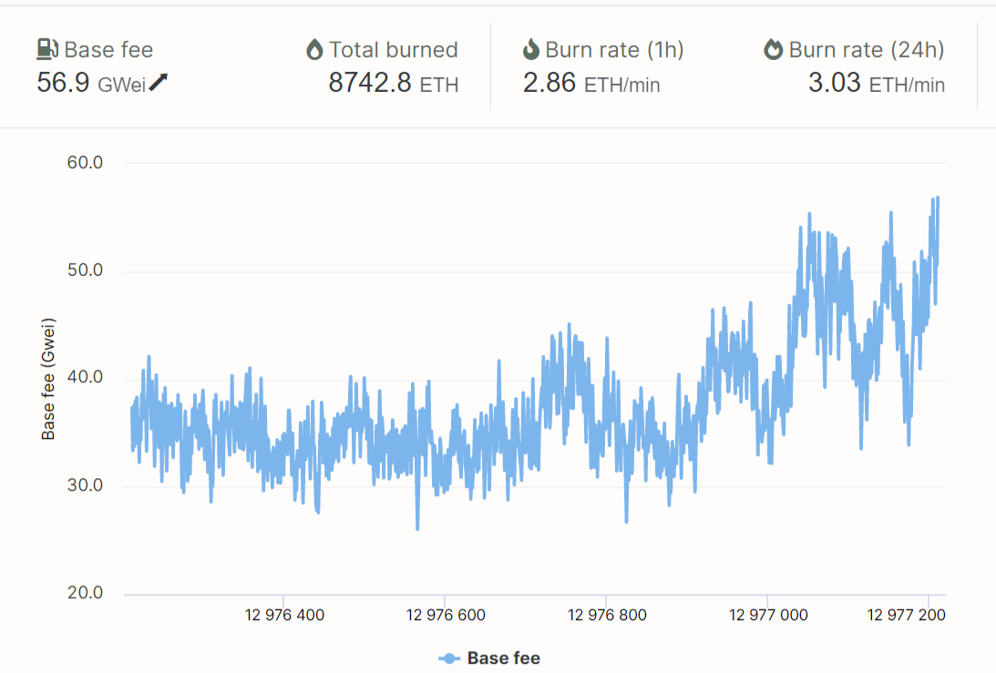 A total of 8742 ETH worth $26.5 million has already been burnt by the network. The burning of ETH makes the existing supply of Ether more valuable given rising demand and reduced supply. The market supply of ETH is on a constant decline already as the majority of it is being staked in the ETH 2.0 staking contracts.