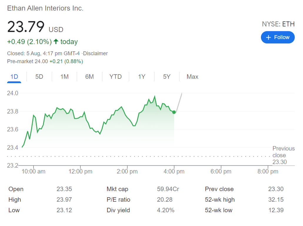 The firm released a press release to make the announcement and said that the ‘D’ in its new ticker symbol would stand for Design. Farooq Kathwari, Ethan Allen’s CEO said the change in ticker symbol would help “differentiate Ethan Allen news from Ethereum news in search results.”