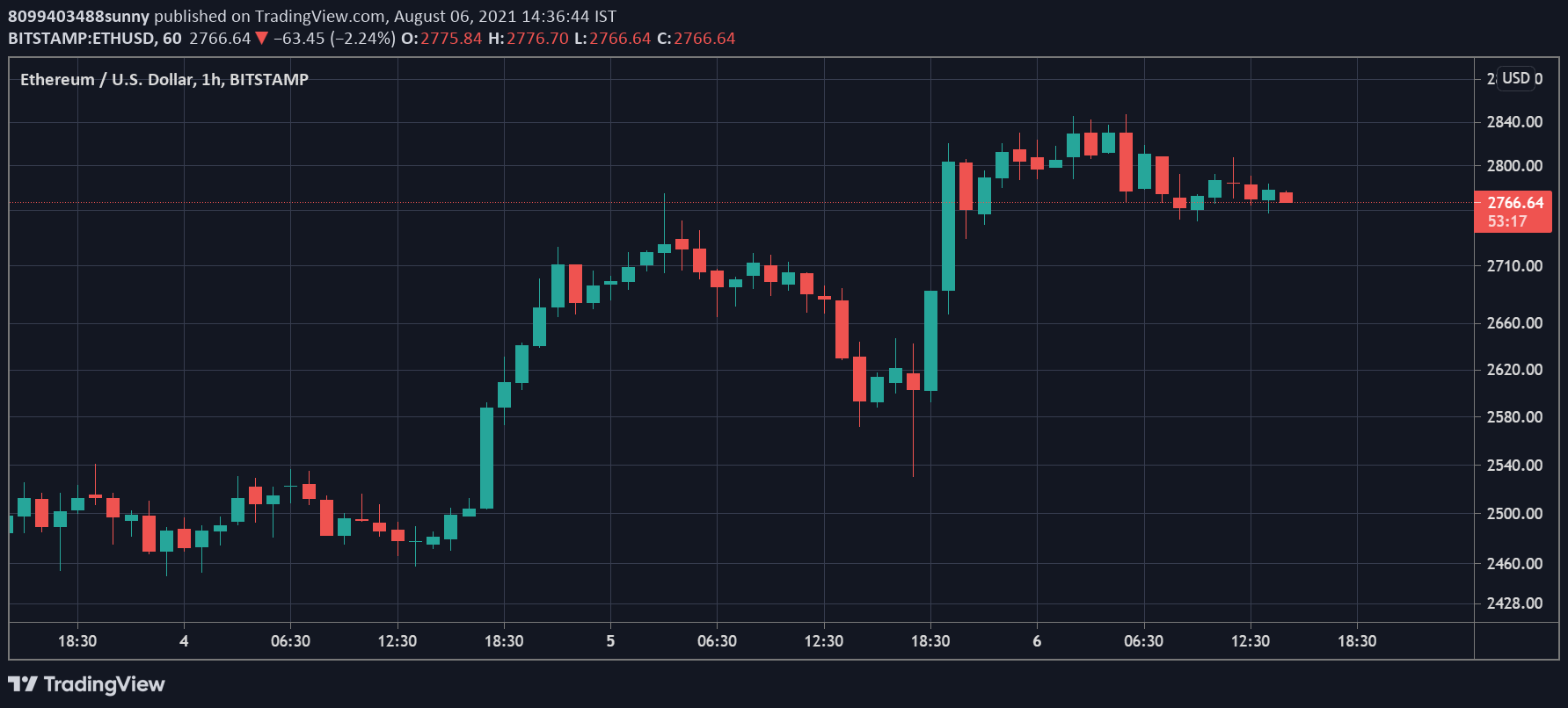 A total of $6.1 million worth of ETH has already been destroyed till now and the network has started producing deflationary blocks where the amount of ETH being burnt are higher than the amount of token paid out to miners. The defaltion is expected to have a bullish impact and make Ether more valuable. ETH price is $2,770 seeing a 18% rise over the past week.