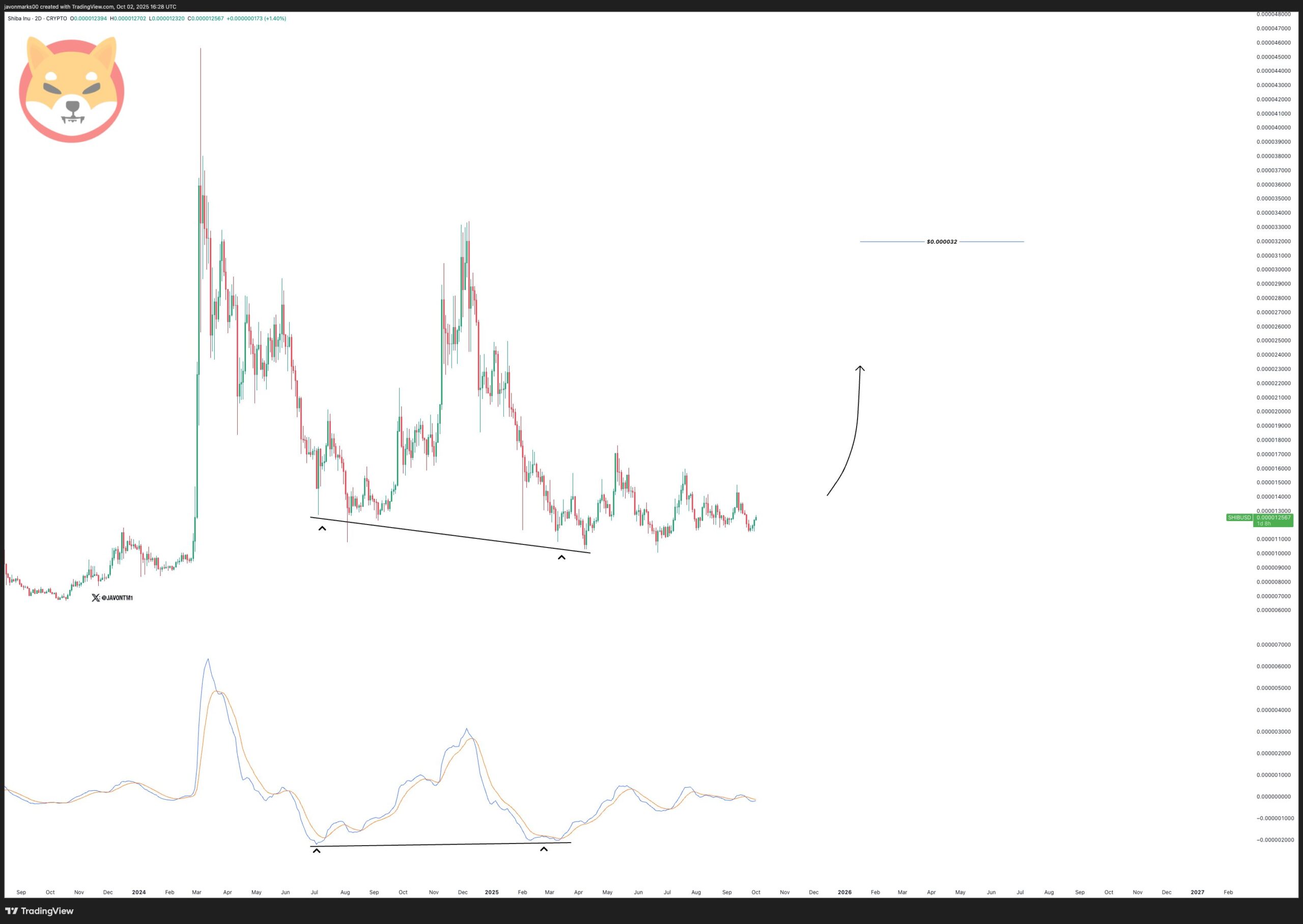 Another expert, Javon Marks, shared that the token’s technical indicators are hinting at a more than 150% recovery move toward $0.000032. According to him, a regular bullish divergence has formed, signaling growing buying momentum.