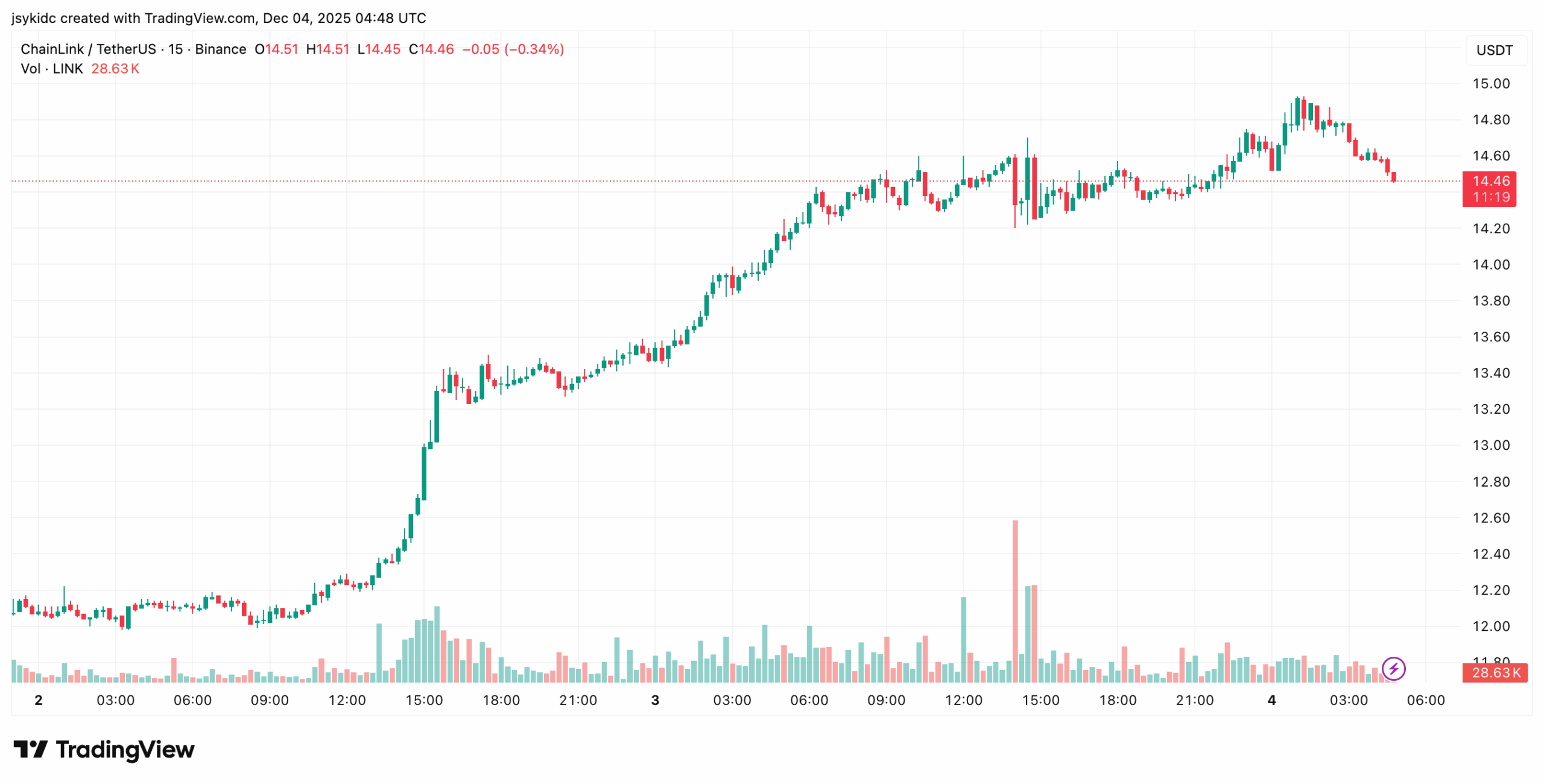 The newly launched Grayscale product, traded under the ticker GLNK. It attracted nearly $42 million on day one. According to Bloomberg ETF analyst James Seyffart, that is a “very good opening for a new launch.” He also added that the Chainlink ETF reached $64 million in assets while showing strong trading volume.