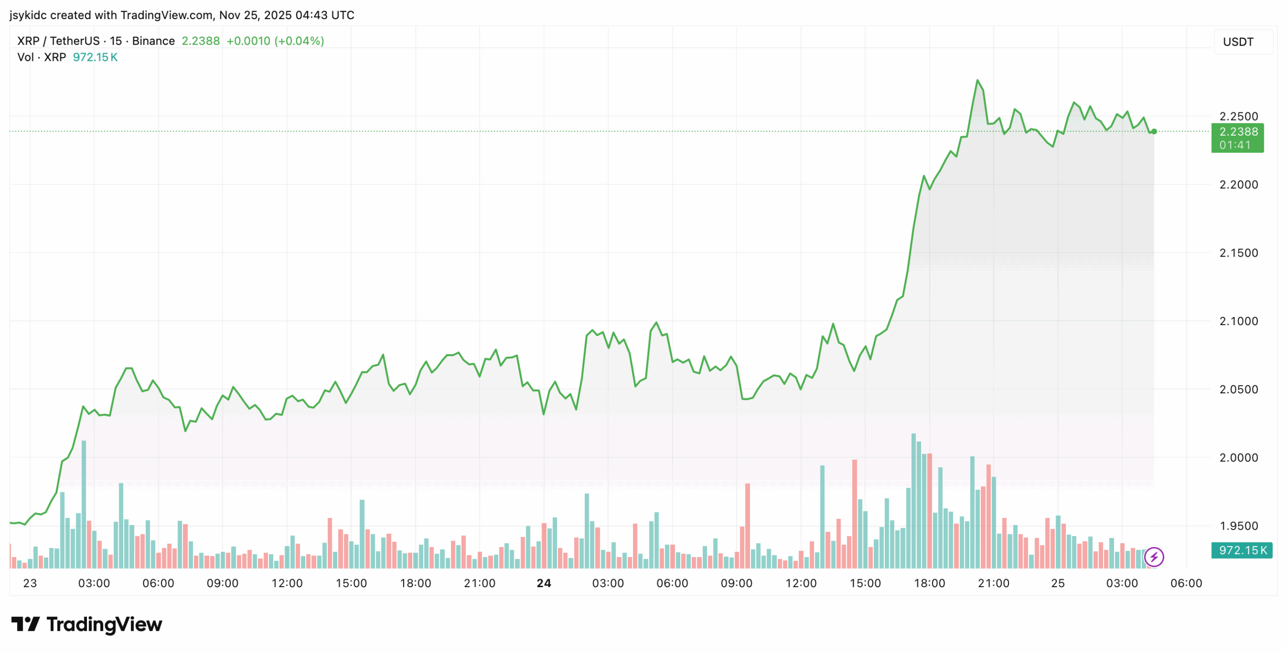 XRP price has finally seen some reaction after the series of ETF launches. The token has gained more than 7% in price to $2.24 as Franklin Templeton and Grayscale released their spot XRP ETFs on the same day.