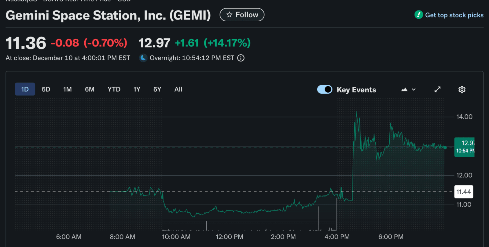 News of the CFTC approval triggered a sharp reaction in the public markets. Shares of the company’s stock, GEMI, surged 13.7% in after-hours trading to $12.92, according to Yahoo Finance.