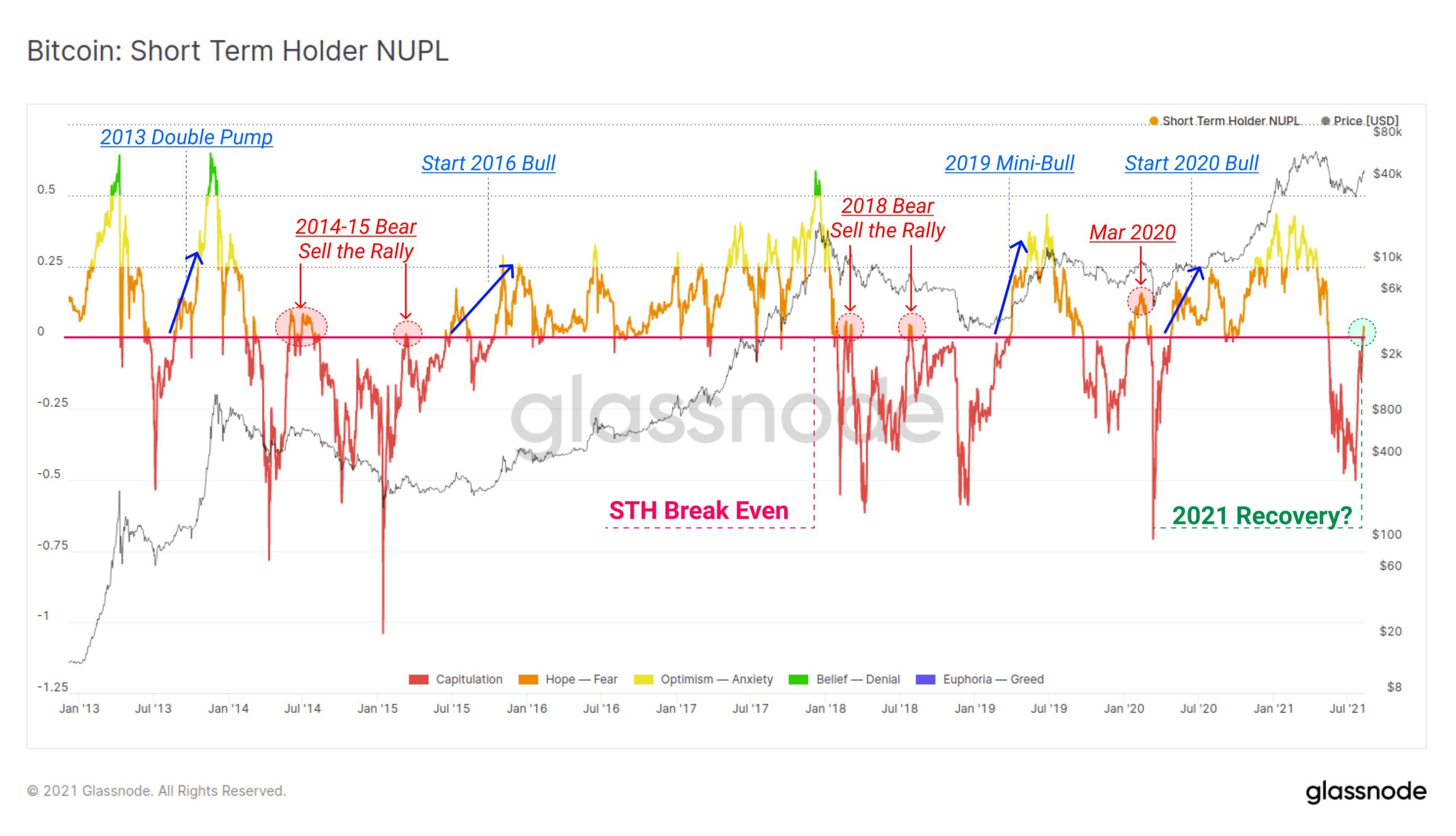The Glassnode data suggest the sudden recovery of NUPL value indicate two key scenarios for the market,