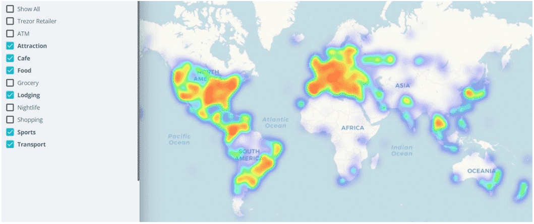 The map of shops that accept cryptocurrencies as a means of payment. Source: coinmap.org