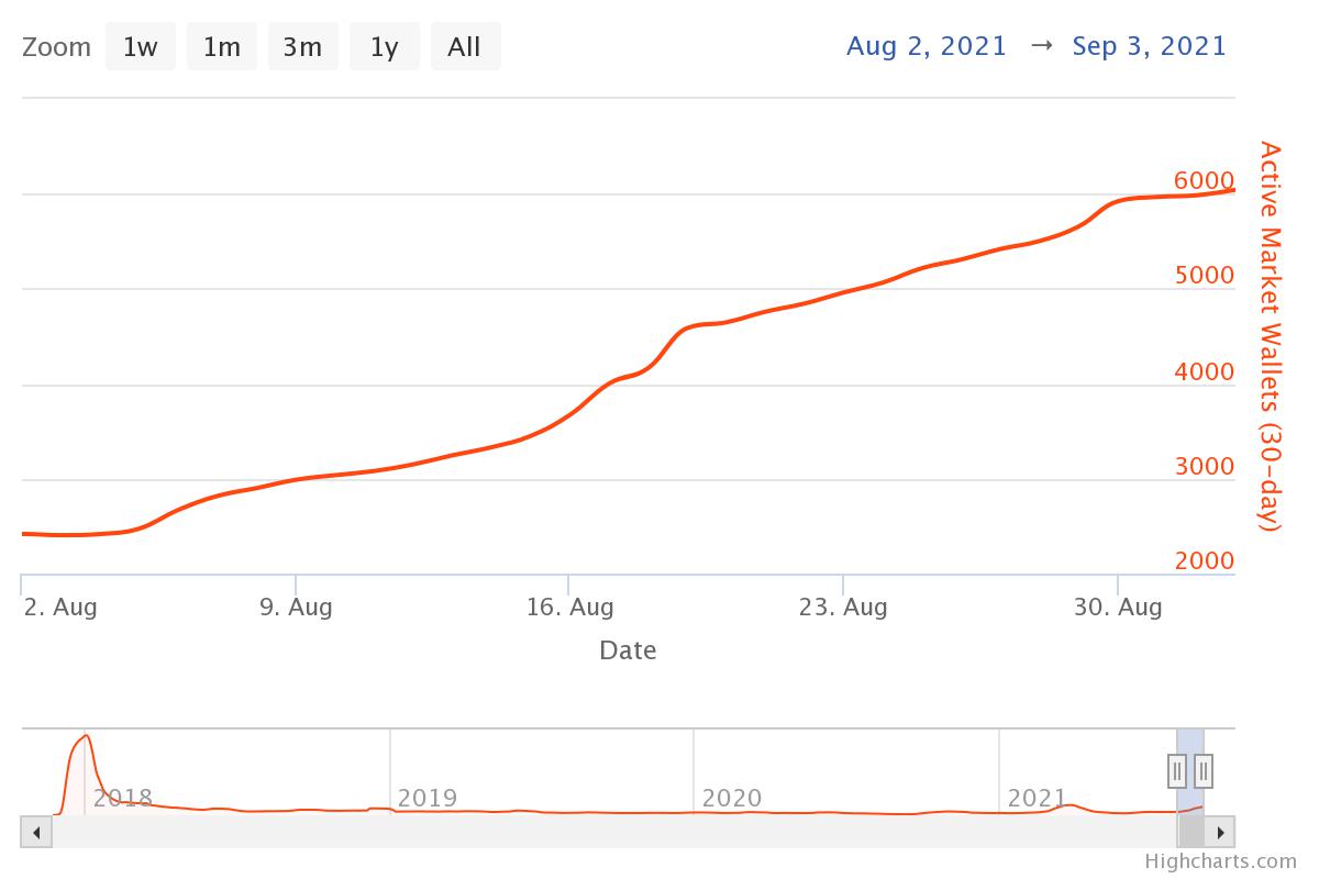 Monthly active market wallets on 2nd August were 2417, hiking up to 6042 on September 2, 2021.